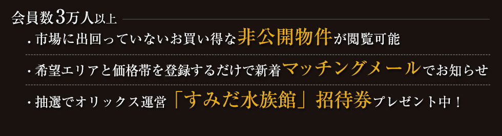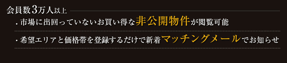 会員3万人以上、非公開優良物件の閲覧が可能!先を越されないマッチングメール機能