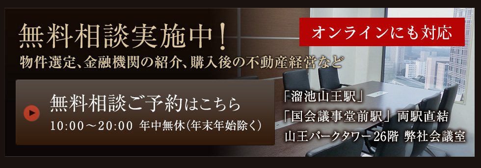 物件選定、金融機関の紹介、購入後の不動産経営など不動産投資全般のご質問にお答えします