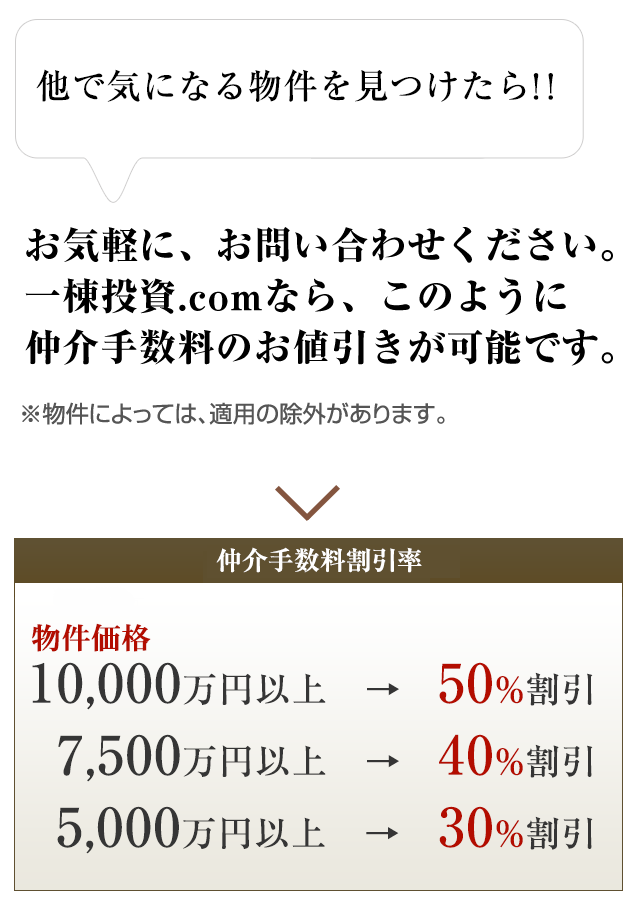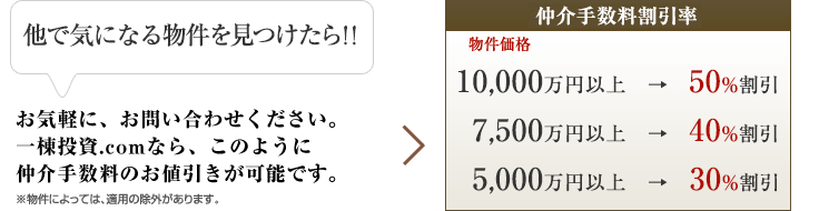 掲載されていない持込み物件の仲介手数料は最大50%割引になります。